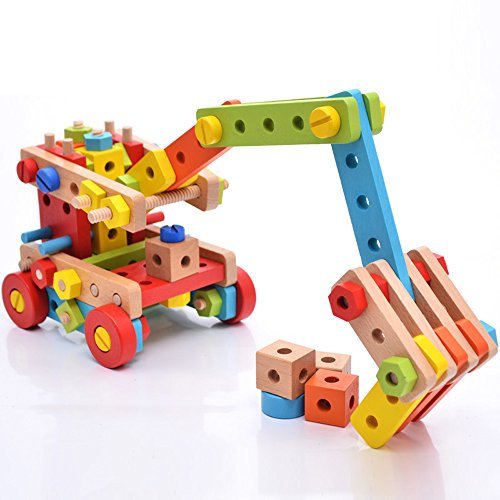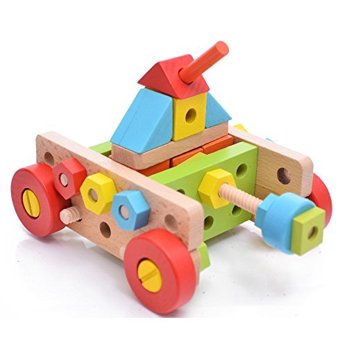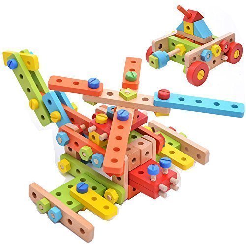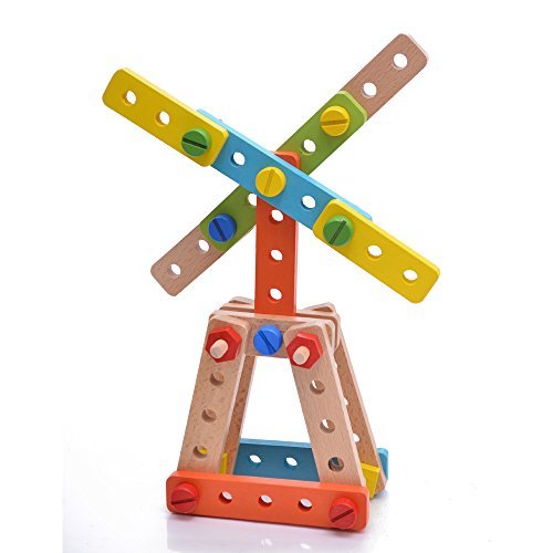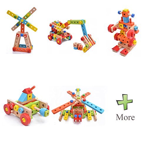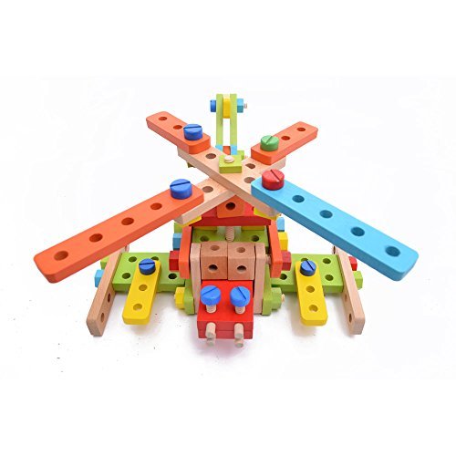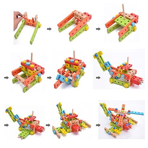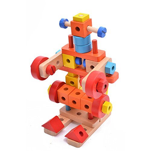 Rolimate 138 Parts Big Size 3D DIY Nut Wooden Early Building Assembly & Disentanglement Block Puzzle Toy [並行輸入品]