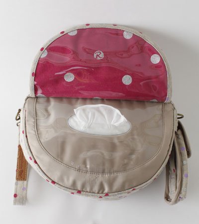 【アウトレット送料無料】オムツポーチ 魔法のポシェットすぐウェットティッシュが取り出せ、赤ちゃんのおむつ替えが驚くほど楽に! (Beige&Cherry)