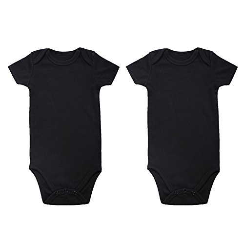 新生児 半袖ロンパース 赤ちゃん100%纯 綿 2枚セット连体 ベビー服 (9-12M, 黒い)