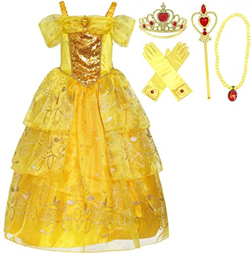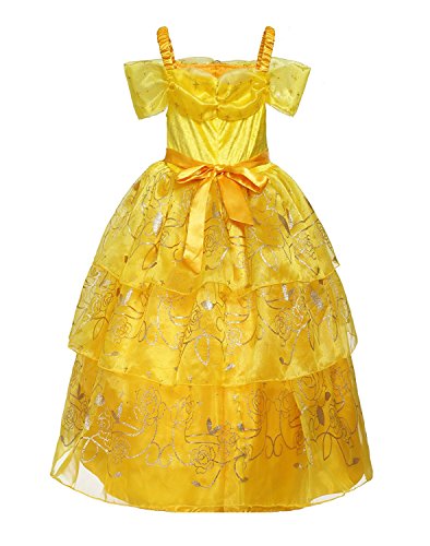 RomyコレクションプリンセスBelleイエローパーティードレスのコスチューム 5-6 イエロー