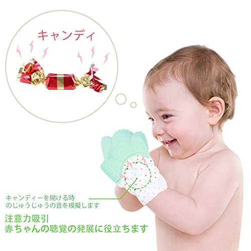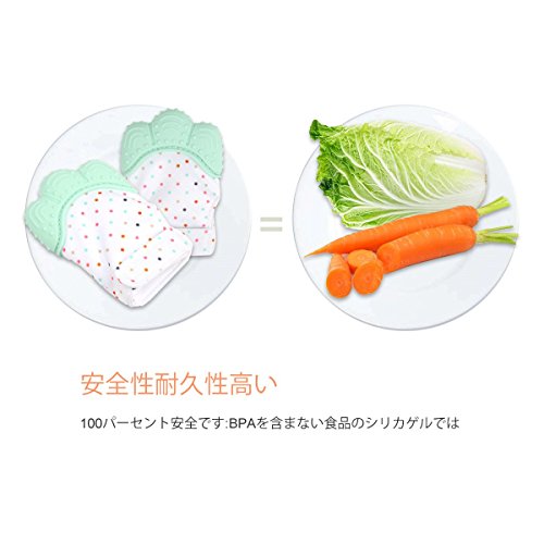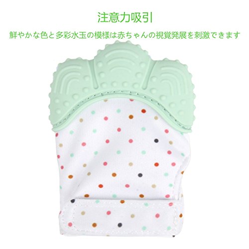 RonXer 赤ちゃん 歯固め 用指しゃぶり防止手袋 食品級シリコン ベビー用手袋 おもちゃ(グリーン)
