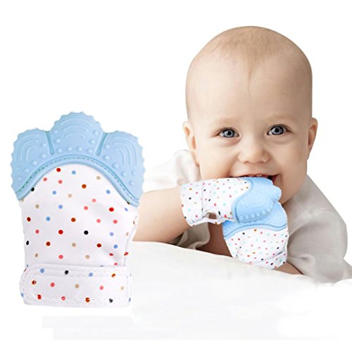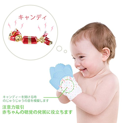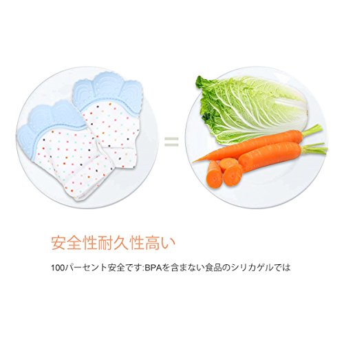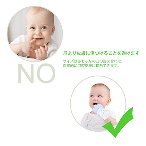 RonXer 赤ちゃん 歯固め 用指しゃぶり防止手袋 食品級シリコン ベビー用手袋 おもちゃ(ブルー)