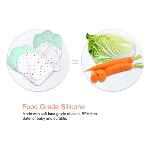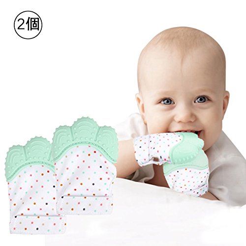 RonXer 赤ちゃん 歯固め 用指しゃぶり防止手袋 食品級シリコン ベビー用手袋 (グリーン(2個))
