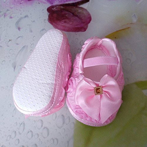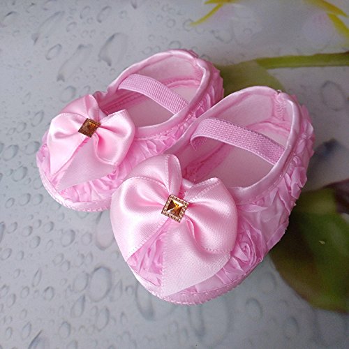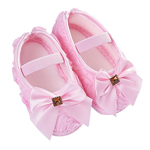 RongSen(TM) ベビーシューズ ドレスシューズ フォーマル 女の子 赤ちゃん リボン レース プリンセス風 赤ちゃん用 歩行練習靴 柔らかい 出産祝い プレゼント 結婚式 パーティー (11cm, ピンク)