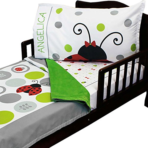 3個入りRoomCraft in the Garden幼児用寝具セットNature毛布とシート Toddler w/ Custom Name グリーン B2TO-L-5-526-SC