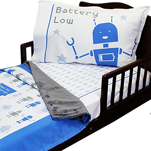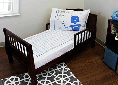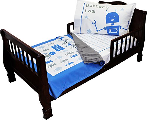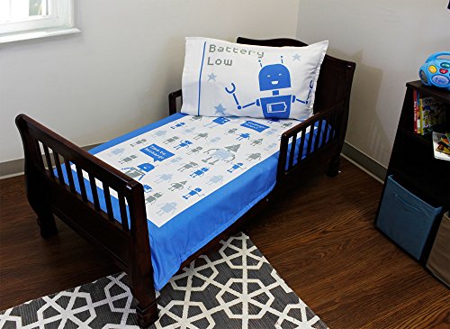 3pc RoomCraft Bedtime Bots Toddler Bedding Set Blue Robots Blanket Sheet and Pillowcase Set by RoomCraft