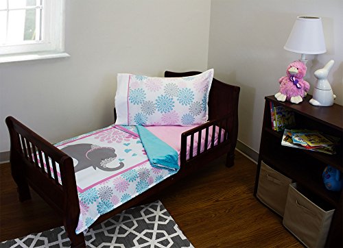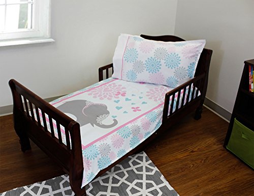 - 3pc Springtime Elephants Toddler Bedding Set Blanket Sheet and Pillowcase Set