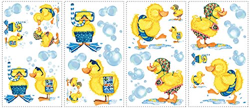 Splish splash, I was taking a bath! Our sweet fluffy duckies are all decked out for some fun in the tub. Comes with several ducks, big and small, as well as tons of light and airy bubbles. Decorate your bathroom in seconds! These wall stickers work on painted walls, tiles, and any smooth surface. They're sure to put a big smile on the face of anyone who sees them!
