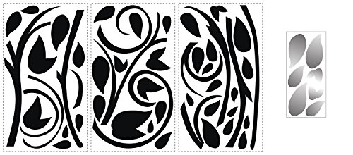 ルームメイツ(RoomMates) 壁に貼ってはがせるウォールステッカー ブラックスクロール ウィズ ホイル リーブス