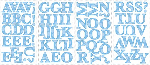Includes four sheets with 73 wall decals, hooks and gems. Printed on opaque material. Suitable for any wall color. Peel and stick decals. Great for nurseries, classrooms and bedrooms. Decals range from 2.5 in. W x 2.75 in. H. Sheet: 10 in. W x 18 in. H. How to apply wall decals. Customize and personalize your surroundings with this versatile and eye-catching set of blue peel and stick letters. Write a name or saying on walls, furniture, accessories, mirrors, or windows.