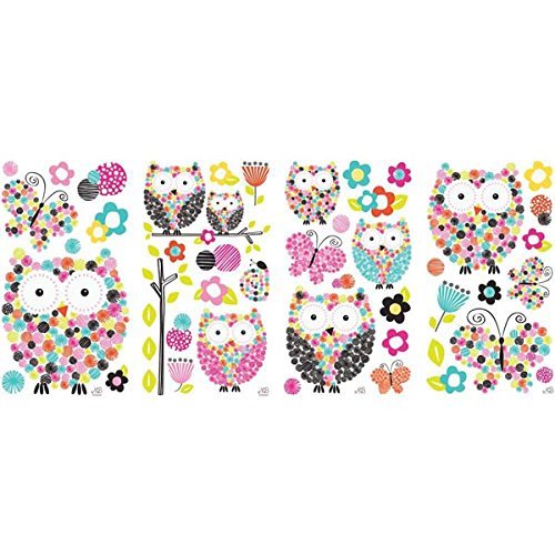 RoomMates RMK2790SCS Prisma Owls and Butterflies Peel and Stick Wall Decals