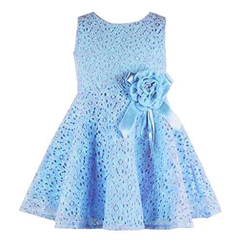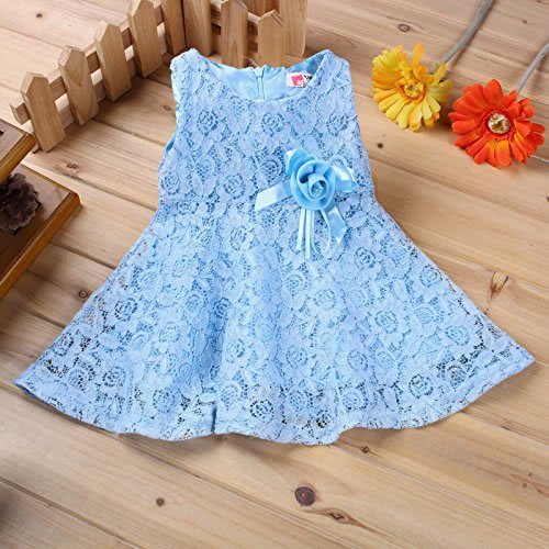 Rorychen ベビー ノースリーブ レース ジッパードレス 女児 ガールズ 赤ちゃん 可愛い おしゃれ ワンピース スカート [全13色][ライトブルー][18.ヶ月]