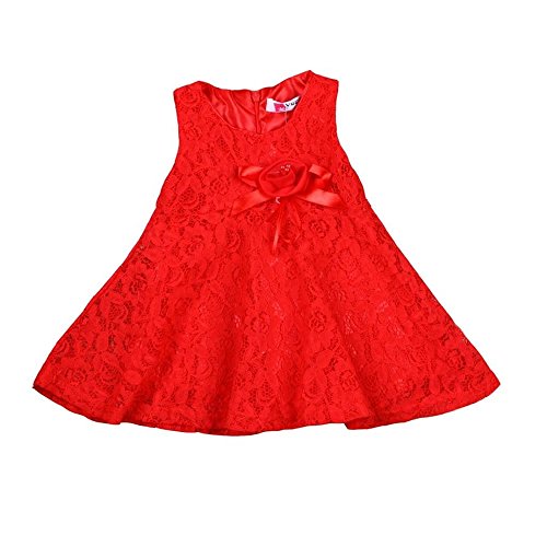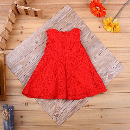 Rorychen ベビー ノースリーブ レース ジッパードレス 女児 ガールズ 赤ちゃん 可愛い おしゃれ ワンピース スカート [全13色][レッド][9ヶ月]