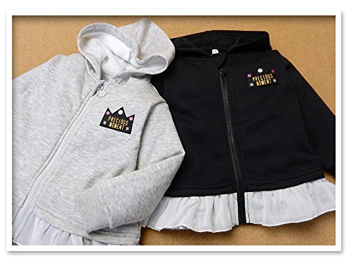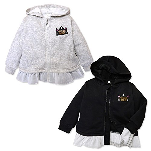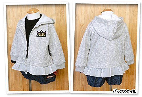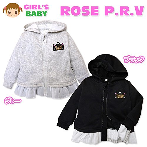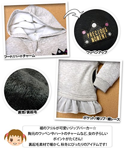 (ブラック/95cm)ベビー服 女の子 アウター フルジップ パーカー 裏起毛 ワッペン 裾フリル 女児 ベビー