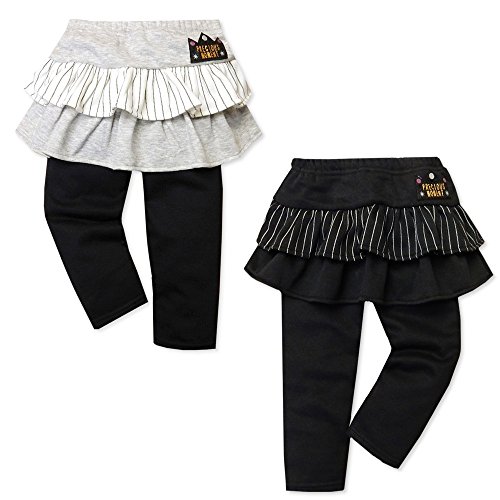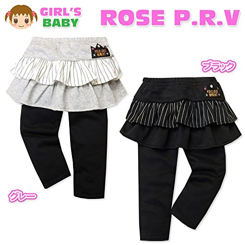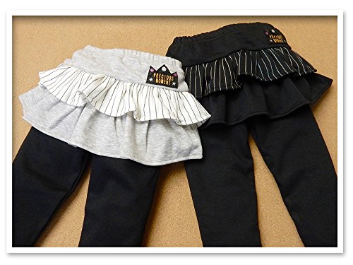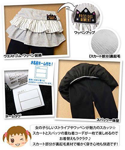 (ブラック/90cm)ベビー服 女の子 スカッツ ボトム スーパーニット ウエストゴム ストライプ ワッペン 女児 ベビー