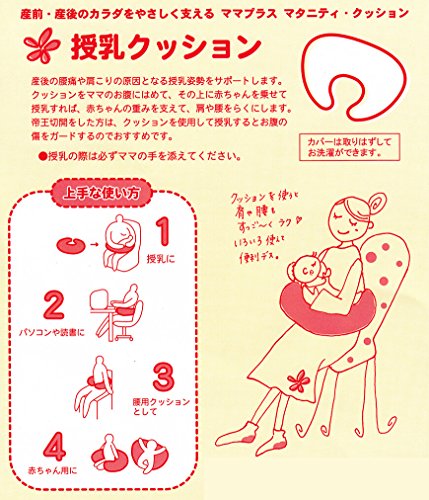 ローズマダム 花刺繍&ドットプリントマタニティ授乳クッションこの授乳クッションは、U字型で適度な厚みが特徴です。授乳時は、腹部に置いて赤ちゃんの椅子がわりに。こうすることで、赤ちゃんの体重を分散できて、腕の力が軽減されます。パソコンや読書のときは、ひじの下に置くことで姿勢を安定させることができます。また、腰用クッションとして椅子と腰の間に置いてもOK!赤ちゃんが座れるようになったら、お座りの支えとしても使えます。カバーはママにも赤ちゃんにもやさしい肌触りの綿100%素材。汚れてきたらはずしてお洗濯もできます。