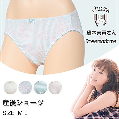 ローズマダム ミキティ 産後ショーツ(M-L)ミキティこと藤本美貴さんプロデュースブランドのchiaraから、柄のラインナップが魅力的な産後ショーツです。産後ショーツとは、出産後の悪露への対応や傷ついた陰部を優しく守る素材を使った、産後に優しいショーツです。マチ部分は綿素材で肌触りも良く、白布なので少量の出血など体の変化も見逃しません。生地の柄のかわいさだけではなく、お腹のフロント部分にちょこんとついたリボンもポイントです。