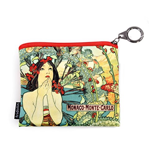 Alphonse Mucha Monaco / Monte Carlo Art Deco Zipper Purse Keep your change in classic Art Nouveau style with iconic artwork from Alphonse Mucha Perfect for storing other small items such as jewellery, contact lenses etc Features lightly padded satin print fabric with secure zipped top Measures 12cm x 10cm (5" x 4")