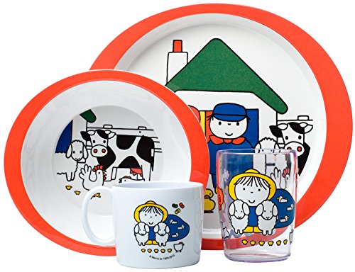 世代を越えて愛され続けるミッフィーでお馴染みのディック・ブルーナのキャラクターたちがプリントされた可愛い食器セット★フラットプレートとチルドレンボウル&マグ&グラスの4点がセットに!絵本からそのまま飛び出してきたような鮮やかな発色は、お子様の目をひき、お食事の時間を楽しくしてくれること間違いなし♪もちろん落としても割れない、食洗機OKのメラミン製だから長く使える、幼児の使い勝手を考え抜いた、実用性の高い安全な構造になっています。器の縁は、お子様でも掴みやすいように設計されています。可愛いギフトボックス入りなので、内祝いやお子様のお誕生日の贈り物、プレゼントにもオススメです♪