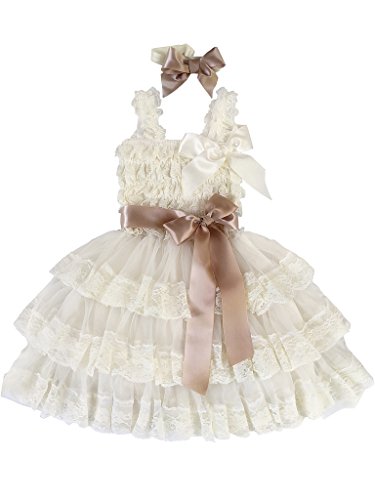Rosy Kids Girl 'sヴィンテージシックフラワーガールレースドレス花サッシヘア花、アイボリードレスライトゴールドサテンベルト、S