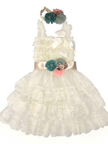 - 追加のフル、フリルと非常に柔らかいヴィンテージシックなフラワーガールレースのドレスです。幼児ガールPOSHレースベビーPettiレースドレス、フリルレースのドレス、ブライズメイドドレスです。西洋Coutureスタイル艶のあるレースのドレスです。