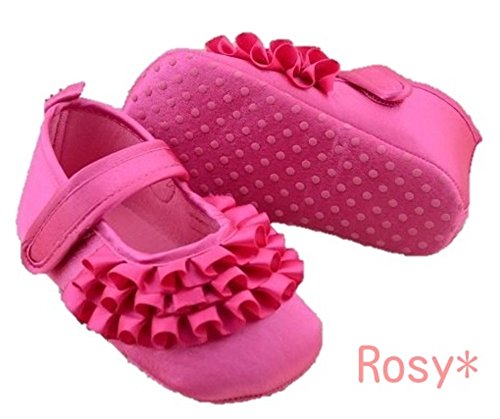 (ロージー)Rosy* サテン フリル おしゃれ 可愛い 女の子 ベビーシューズ 安心 滑り止め付き マジックテープ 結婚式 お宮参り セレモニー 撮影 初めて ファーストシューズ 乳幼児 saten-pk11