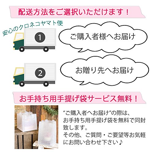 - ・【梱包】ラッピングした状態で専用BOXに入れてお届け。ご注文者様へのお届けに限りお手持ち用手提げ袋1枚同封。