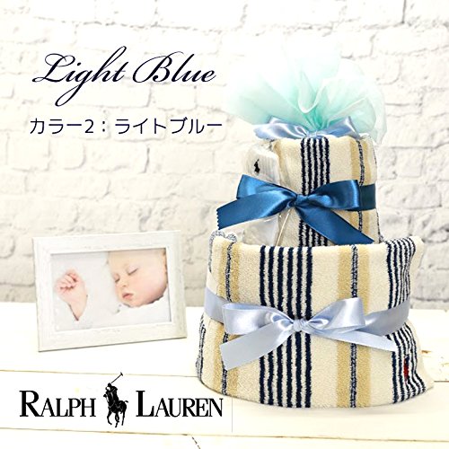POLO RALPH LAUREN | おむつケーキ 2段 名入れタオル 男の子 出産祝い 選べるおむつ (メリーズSサイズ, ライトブルー)