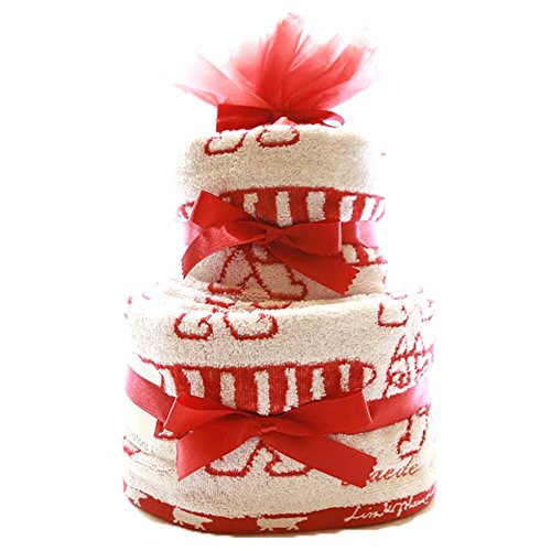 LISA LARSON | おむつケーキ 2段 女の子 男の子 出産祝い 名入れ パンパース (パンパースM, レッド(赤・猫))