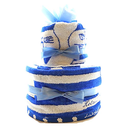LISA LARSON | おむつケーキ 2段 女の子 男の子 名入れ 出産祝い パンパース (パンパースM, ブルー(青・猫))