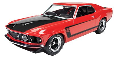 真の値、Ford Mustangカスタム・銀行、1961年、1 : 25スケール1969 Ford Mustang Boss 302、レッドボディがハイライトされブラックストライプ、ブラックのフードは、素晴らしい詳細な内装であるかに関係なく、グッドイヤーのゴム製タイヤ、収集価値のある項目を選択する場合に使用します。