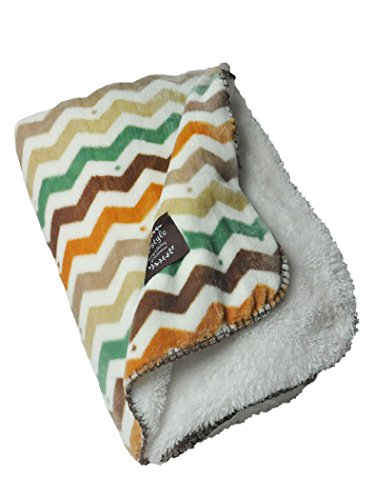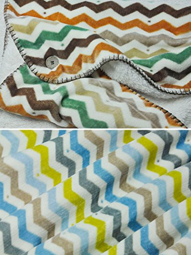 (ラウンドアース) Round Earth ブランケット 人気のギザギザ柄でお部屋のアクセントにもなる ボタンを留めればケープに変身 グリーン×オレンジ 100×140