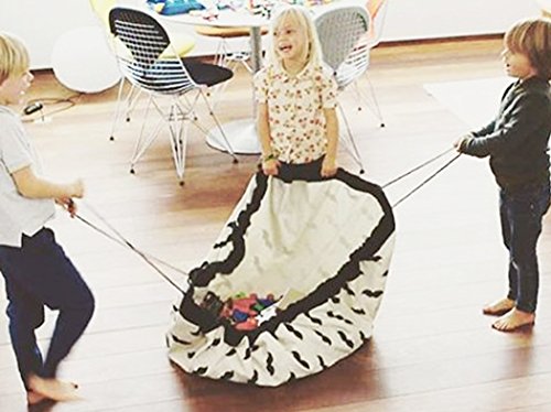 ヒモを引っ張るだけできれいにおもちゃを収納することができます。シートはそのままフックにかけることができ、場所をとりません。