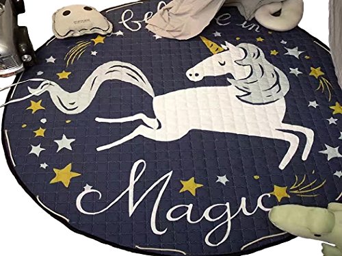 (ラウンドアース キッズ) Round Earth Kids 女の子の プレイマット 大人っぽいユニコーン柄でちょっぴりお姉さん気分 簡単操作でラクラクお片づけ もうおもちゃが散らばらない、なくならない 150 ホワイトユニコーン