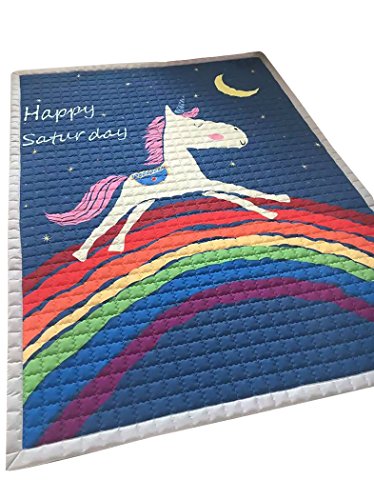 (ラウンドアース キッズ) Round Earth Kids 女の子の プレイマット 幻想的なユニコーン柄で良い夢が見られそう ふんわり厚手であたたかく衝撃から守る 200x140 ユニコーン