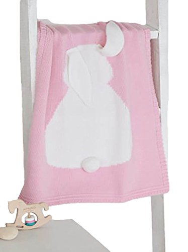 (ラウンドアース キッズ) Round Earth Kids ニットブランケット うさぎ の耳と しっぽ が キュート コットン 素材 が優しく 肌触り 抜群 100x130 ピンク