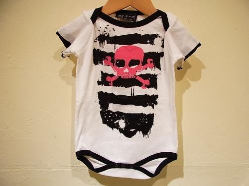 スカルロンパース。 パープルのスカルが可愛くカッコイイデザインです。 男の子でも女の子でもアリなロンパースです。 商品画像の色目はできるだけ忠実に再現するよう努力しておりますが、 モニターによってページで見た色と実際の商品の色とは多少違う場合がございます。 実寸をご参考の上、お持ちの服とお比べください。 人の手により採寸ですので、若干の誤差については、 ご理解ください。