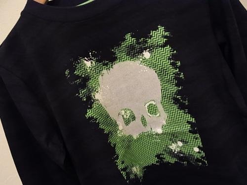 ギザギザ柄のスカルがカッコイイロンTです。 Bodyは良く見るとマダラなボーダーになっています。 とても個性的ですが渋いデザインになっています。 シャツと重ね着してもカッコ良さそうですねえ~ 商品画像の色目はできるだけ忠実に再現するよう努力しておりますが、モニターによってページで見た色と実際の商品の色とは多少違う場合がございます。 実寸をご参考の上、お持ちの服とお比べください。 人の手により採寸ですので、若干の誤差については、 ご理解ください。
