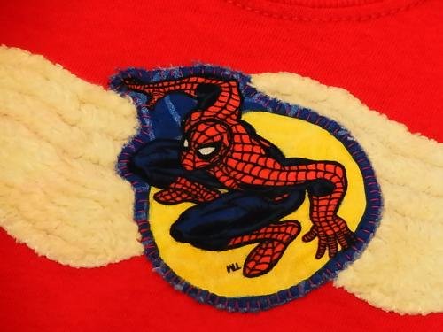 スパイダーマンのTシャツ。 胸元の装飾がとてもスパイダーマンマッチしています おそらく手作りかと思います。 商品画像の色目はできるだけ忠実に再現するよう努力しておりますが、 モニターによってページで見た色と実際の商品の色とは多少違う場合がございます。 実寸をご参考の上、お持ちの服とお比べください。 人の手により採寸ですので、若干の誤差については、 ご理解ください。