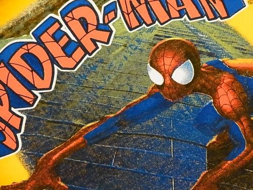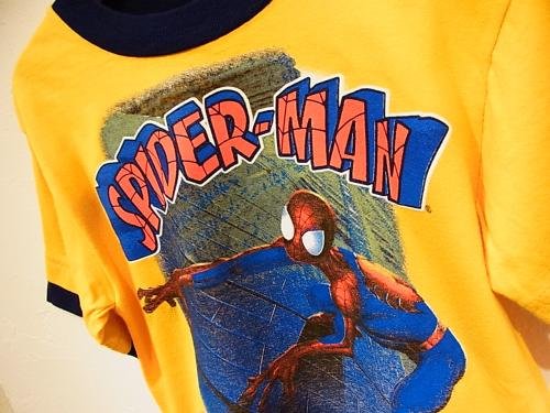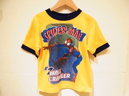 スパイダーマンのTシャツ。 ウォールクローラー をしているスパイダーマンがとても男の子好みです ベースのTシャツの色もいい感じでスパイダーマンのプリントもインパクトがあってオススメです 普段使いにはまだまだ十分使える一点です 商品画像の色目はできるだけ忠実に再現するよう努力しておりますが、 モニターによってページで見た色と実際の商品の色とは多少違う場合がございます。 実寸をご参考の上、お持ちの服とお比べください。 人の手により採寸ですので、若干の誤差については、 ご理解ください。