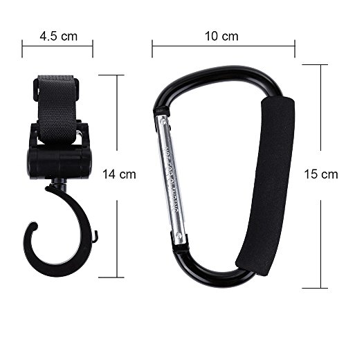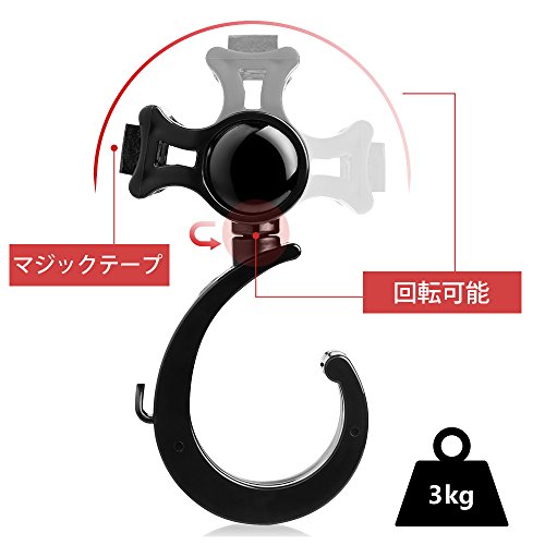 - 【360度回転フック】ベビーカーや自転車のハンドルなどに簡単取付。自由に調整もできます。