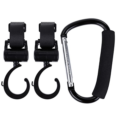 Rovtop ベビーカーフック 人気! 3個セット 360°回転 荷物カラビナ アルミ合金 負担を軽減する ベビーカー/ショッピング/旅行/アウトドア用