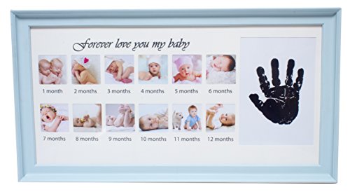 ロイヤルブランドMy First YearフォトMomentsベビー記念品フレーム手足印刷フレームベビーシャワー出産ギフトBaby Boyマイルストーンフレームブルー