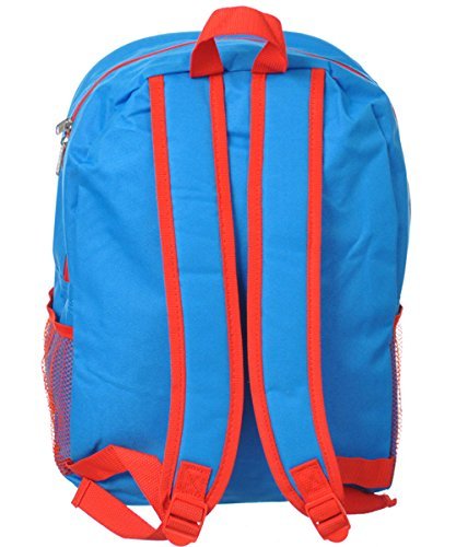 This Mickey Mouse and Friends backpack can easily carry books, gym clothes, pencils and more! It features a roomy main compartment, the sides feature mesh pockets that are great for storing a calculator, note cards or even a water bottle. The lunch bag is big enough to store lunch and snack for the day and conveniently attaches to the backpack thanks to its velcro straps. This set can be hung up when not in use by the webbed locker loop. This set is designed in Blue durable fabric with accents of Red with fun images of the awesome Mickey, Goofy and Donald! The perfect back to school choice for any Mickey Mouse fan!