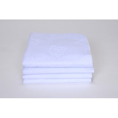 Made of polyester felt with vinyl center;White color baby pads;100% waterproof pads;Machine-washable pads;Measures 18L x 18W in.