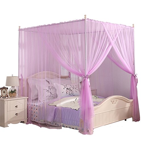 royal-ヨーロピアンスタイルスクエアトップMosquito Net three-door暗号化Thickeningホームダブルベッドプリンセススタイルパープル 1.5m (5 Feet) Bed