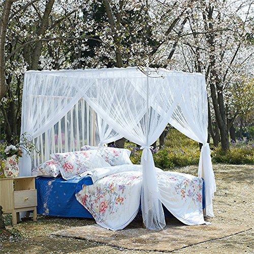 royal-ヨーロピアンスタイルスクエアトップMosquito Net three-door暗号化Thickeningホームダブルベッドプリンセススタイルステンレススチールブラケットホワイト 2.0m (6.6 feet) bed