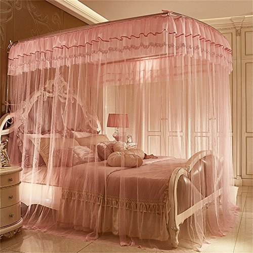 royal- U型レール釣りロッドTelescopic Mosquito Net three-door Singleダブル暗号化Thickeningステンレススチールブラケットピンク Diameter 25mm
