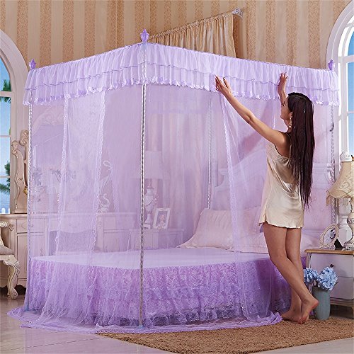 royal-ヨーロピアンスタイルスクエアトップMosquito Net three-door暗号化Thickeningシングルダブルベッドステンレススチールブラケットパープル 1.8*2.2m bed