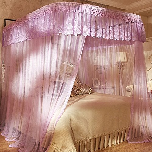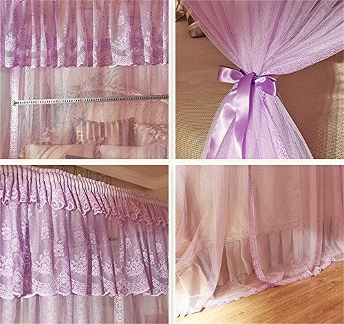 royal- U型レール釣りロッドMosquito Net three-door Singleダブル暗号化Thickeningプリンセススタイルステンレススチールブラケットパープル 1.8m (6 Feet) Bed